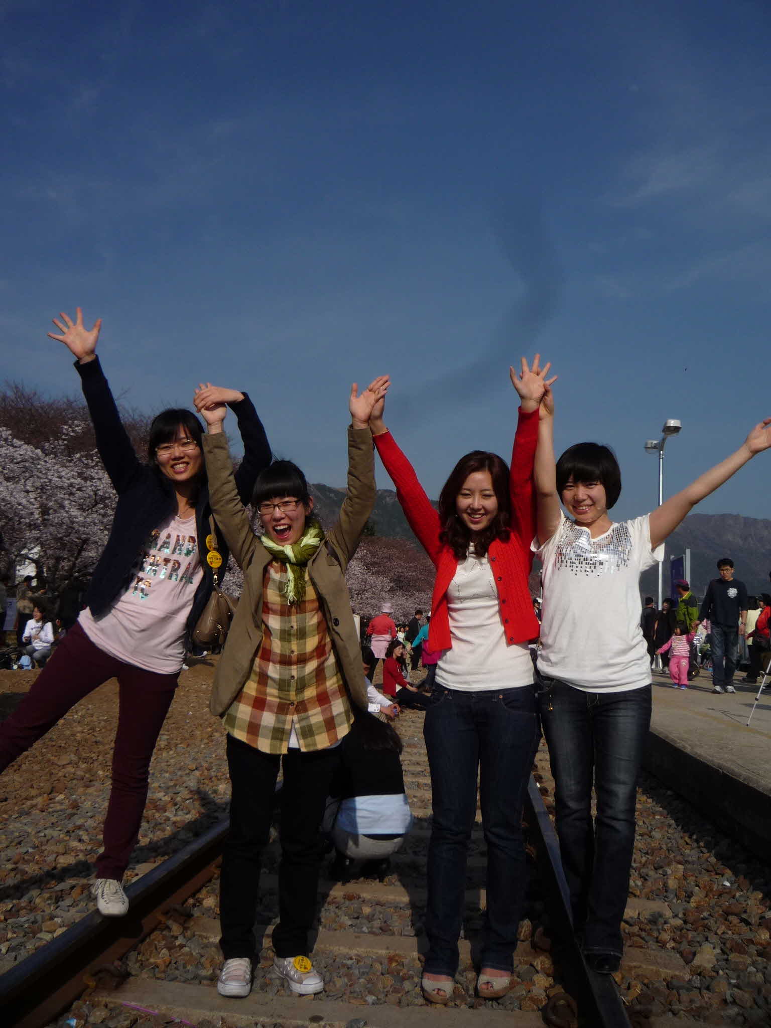 하늘과 땅,벚꽃과 철도길 너무나 환상적인 하모니를 이루며 다양한 포즈를 취해 사진 찍기에 힘을 썼다~ㅋ