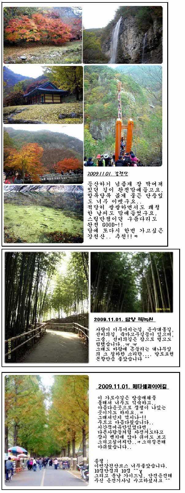 제목 사진으로보는 11월 1일 강천산 여행후기 ^^ 등록일 09.11.04 조회 481