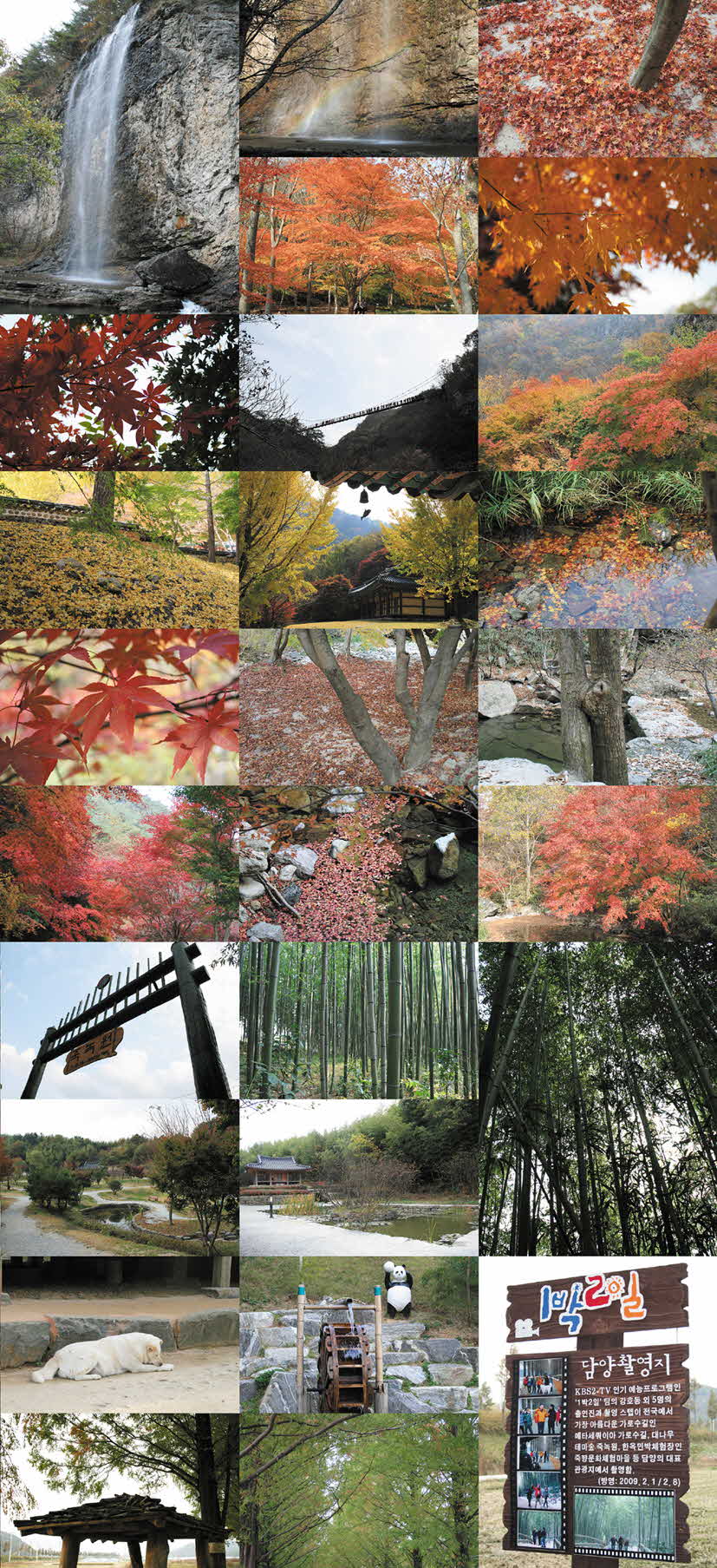 날씨 완전 쾌청 강천산은 이번이 처음인데 가볍게 등산하기에 아주 좋은거 같아요. 단풍도 이쁘게 물들었고 1급수에서만 산다고 하는 송어, 아찔한 구름다리, 폭포 사이로 무지개까지 너무 좋았어요. 앉아서 쉴수 있는 벤치들도 많이 있고 대나무숲길이랑 맨발로 걸을수있는곳까지 볼거리가 많아서 좋은곳 1박2일 촬영지로 더 유명해진 죽녹원과 메타쉐콰이길 이곳은 2번째 그때는 촬영전이었는데 전에랑 조금 변해있더군요. |