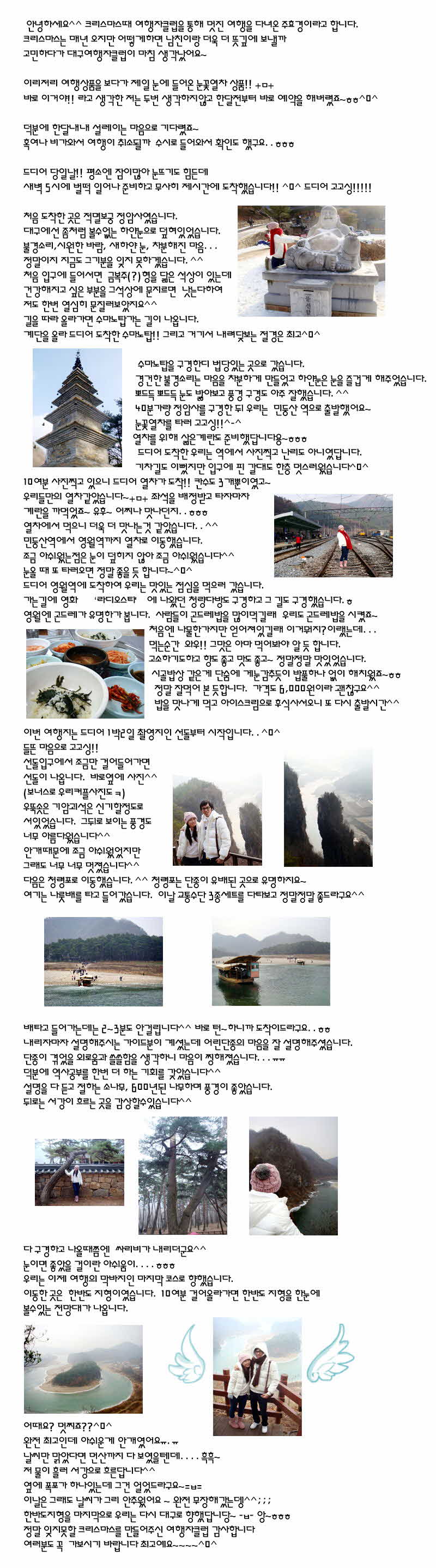 제목 [X-MAS] 최고의 여행지 칙칙폭폭~♬환상선 눈꽃열차! 영월 명소 등록일 09.12.29 조회 462