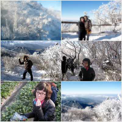 이런 글을 올리는것이 처음이라 여행을 가고 싶어하는 많은 사람들에게 도움이 될런진 잘 모르겠지만 작으나마 정보를 주기 위해 글을 올립니다. 여행자 클럽을 통해 여행을 첨 가시는 분들은 뭘 준비해야하나 고민도 되시겠지만 3일전에 예약하셔서 할인받으시고(제 옆에 계신분은 제가 여행다니는거 보시고 가족회원등록도 하셨지만 전 아직...) 차 안에서 먹을 간단한 먹거리,간식거리를 준비하셔서 약속장소에 나가시면 됩니다.짐은 차에 두고 내리니깐 필요한것들이 있으시면 챙겨가셔도 부담없습니다. 새벽에 대구출발 약속 시간은 칼입니다...1~2분정도 지나면 쌩~출발합니다.(아직 오지 않으신 분들이 있더라도 다음 스케줄이 있으니...그렇다던군요..) 본론으로 들어가서.....ㅎㅎ 말그대로 입니다...무주는 스키장으로 유명하쟎아요...눈을 자주볼수없는 대구사람들에겐 적극 추천입니다. 작년 이맘때쯤 여행자클럽으로 영월 눈꽃열차를 탔었는데 눈이 오지 않아서 그냥 열차만 탔던 아픔기억이 있어 예약전 전화로 물어보았습니다...항상 눈이 있냐고요..전화받으시는분이 친절히 무주스키장에서 눈을 뿌리니깐 눈은 항상 있다고 말씀하시더라구요...그래서 오직 눈을 보겠다는 신념으로 신청했구요... 무주 설천봉은 진짜 기대 이상이었습니다....넘~넘~ 러브리한 눈들이 나무가지 위에 샤르르 얼어붙어 산 전체가 하나의 장관을 이루고 있었습니다. 멀리 강원도 까지 갈필요가 없더군요... 여기서 잠깐....진짜 진짜 춥습니다...내복,방한복은 물론이요 귀마개 털모자 장갑은 필수... 곤도라를 타고 15분정도 올라가 걸어서 약20~30분정도 가면 산 정산에 오를수 있는데요 계단으로 된 길이라 힘들진 않지만 미끄러울수 있으니 여성분들! 구두는..사양할께요... (전 운동화 신고 가서 조심조심 내려왔습니다. ㅋㅋ) 곤도라 내리는 곳에 레스토랑에서 음료수와 먹거리를 판매하는데요 그곳에서 따뜻한 코코아랑 소세지도 맛나죠 가격은 3500원 비싸다구요? 그래도 분위기는 맘도 몸도 녹여준답니다.. 그리고 전 딸기따기 체험을 했는데 기대하지 않았는데 넘 맛있는 딸기를 먹을수 있어서 좋았어요... 차에서 내려 딸기비닐하우스 주인을따라 딸기따는 장소로 들어갑니다. 주인아저씨가 사각팩을 하나씩 나눠 줍니다. 그러면 쭉~ 따라 들어가 간단한 설명을 듣고 아저씨가 내는 딸기에 대한 퀴즈도 맞추고( 정답을 맞추는 자에겐 사각팩을 하나 더 줍니다. 더 딸수 있도록) 각자의 팩에다가 딸기를 따서 놓으면 되는겁니다. 전 갠적으로 그렇게 맛있는 딸기는 첨 먹어봅니다. 하지만 먹어볼수 있는 기회도 없이 급하게 빨리빨리 따라고 하기에 맘만 급하고 여행체험의 여유를 즐길수가 없어 아쉬웠습니다. 대구에서 2시간 30분정도 떨어진 곳이서서 그런지 보통은 대구에 오면 8시에서 9시 사이인데 이번여행은 7시쯤 도착했어요. 대구 들어와서 범어네거리 까지오는데 1시간이 걸렸으니깐요...(대구에서 더 막혀요~) 설천봉을 다녀온후 사람들에서 마구마구 자랑했습니다. 넘 좋다고요... 다시 한번 여행자클럽 사이트에 들어옵니다...담엔 또 어떤곳을 여행할것인가 하구요.. 무주 여행 고민하시는분..완죤 추천합니다.... 뽀드득뽀드득 눈밟는 소리에 일상의 피곤을 떨쳐버리세요~ |