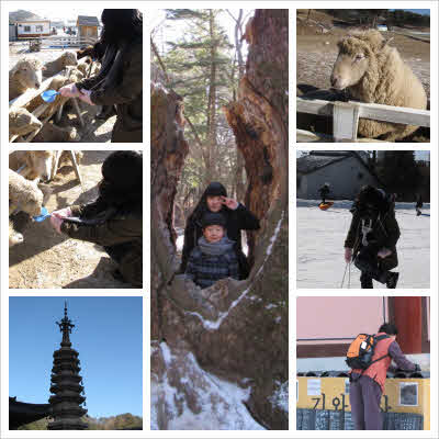 지난 12월 26일 기다리고 기다리던 여행을 가게되었다. 2008년에 같은 코스로 여행을 가고자 했지만 따뜻한 날씨로 인해 대관령쪽으로 눈이 다 녹아서 갈수없다는 연락을 받고 다른 코스로 급선회하는 바람에 이번 코스는 꼬박 일년만에 갈수있게되어 무척이나 기대되었다. 그렇게 대구여행자클럽과의 여섯번째 여행이시작되었다. 두 시간을 달렸을까? 휴게소에 도착했다. 대구에서는 좀처럼 보기힘든 눈이 내리고 있었다. 우리 일행은 큰 아이들을 제외하고는 휴게소에서 준비해간 김밥으로 아침을 해결하고 다시 버스에 올랐다. 또 다시 두 시간이 흐르고 대관령 바람마을에 도착했다. 눈을 보기위해 서둘러 차에서 내렸다. 좀처럼 대구에선 눈을 보기 힘들었던 나는 잔뜩 싸인 눈을 기대하고 버스에서 내렸건만 많은 사람들이 오가는 여행지라 그런지 눈이 말끔하게 치워져있었다. 첫 번째 코스로 우리는 치즈를 만들러 갔다. 준비된 탁자 위에는 함초와 대관령우유를 원료로 강사의 도움으로치즈를 만들어 볼 수 있었다. 정성들여 치즈를 만들고자나 과자와 딸기잼을 나눠주신다. 만들어진 치즈를 과자위에 올리고 딸기잼을 올려 우리가 만든 웰빙치즈를 맛 보았다. 입안에 넣었을 때 첫 느낌은 단단하게 만들어진 두부를 맛보는 것 같았으나 씹으면 씹을수록 치즈특유의 맛과 향이 났다. 각테이블에 와인도 한 병씩 올려졌다. 우리는 작은 잔에 와인을 따르고 치즈와 함께 맛본 다음 양들에게 먹이를 주기위해 자리를 옮겼다. 작은 손잡이 바가지에 양먹이를 얻고 양 앞에 섰다. 하얗게 구름처럼 뭉실뭉실한 털을 가진 양들이길 바랬는데 이 녀석들 언제 씻었는지 털이 누렇다. 하지만 눈망울이 너무 순수하고 이뻤다. 코앞에 먹이를 대자 정신없이 먹기시작했다. 어떤 녀석은 카메라를 들여다 대니 가만히 포즈도 잡아준다. 도도한 양.... 우리는 그 양을 그렇게 불렀다. 양모이를 주고 돌아서자 몇몇 아이들이 보이지 않는다. 눈썰매를 타러 간 모양이다. 나도 서둘러 눈썰매를 타러갔다. 줄을 서서 한참을 기다렸다 눈썰매를 탈 수 있었다. 하지만 우리는 기다리는데 지쳐 꼬마아이들이 타는 짧은 코스로 이동해 마음껏 눈썰매를 탈 수 있었다. 그렇게 놀다보니 어느 덧 점심시간이다. 생각보다 메뉴가 작았고 가격도 비쌌던거 같다. 누군가 컵라면을 들고 자리에 앉길래 나도 컵라면을 하나 사기위해 밖으로 나왔다. 800원하는 컵라면 하나가 거기서는 2,000원에 팔리고있었다. 아무리 여행지지만 너무 심하다는 생각이 들었다. 이 코스 생각하시는 분이라면 도시락이나 컵라면을 을 준비해가도 좋을 듯 하다. 식사를 할 수 있는 자리와 뜨거운 물은얼마든지 구할수있었으니까. 그렇게 점심을 먹고 우리는 월정사로 향했다. 전나무숲길이 참 이쁘게도 펼쳐져있다. 하지만 날씨가 추웠던 탓에 천천히 감상할 시간이 없었다. 우리는 서둘러 월정사로 들어섰다. 월정사는 조계종 제 4교구의 본사라고한다. 그래서인지 관광을 목적으로 온 사람도 많았지만 불자도 참 많았던거 같다. 팔각구층석탑과 그 앞에 석탑을 바로보고 앉은 석조보살좌상을 돌아보고 나니 딸아이가 춥다고 울상이다. 덕택에 더 머무를 겨를이 없었다. 이 코스는 봄이나 여름에 오면 추위에 서둘러 발길을 돌리지 않고 천천히 느긋하게 돌아볼 수 있을 것 같았다. 아이들과 함께하는 여행이라 체험이 함께하는 여행을 선택했다. 방학을 맞이한 요즘 아이들과 좋은 추억만들기에 도전해보아도 좋을듯하다. P.S : 당일 하루종일 안전운전을 하여주신 기사님과 친절했던 가이드아가씨 너무 고마웠습니다. 다음 여행에서도 두 분과 함께했으면 하는 바램이네요. 새로운 시작 그 설렘을 간직하고픈 1월입니다. 좋은 일만 가득한 한달되시길 기원합니다. 새해 복 많이많이 받으세요~~ |