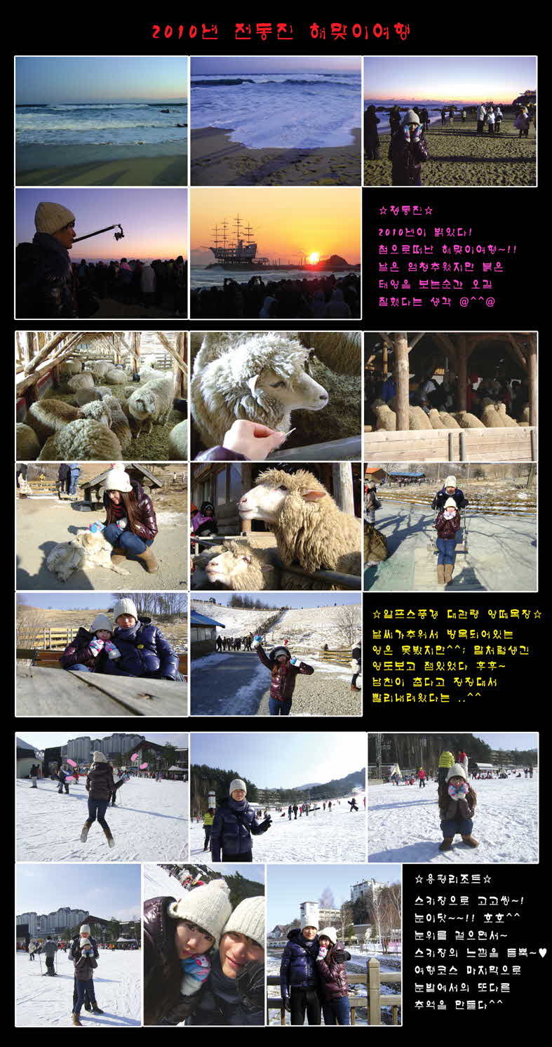 제목 | ♬ 2010. 1. 1 정동진 해맞이&양떼목장&용평리조트 ♬ | 등록일 | 10.01.05 | 조회 | 486 |