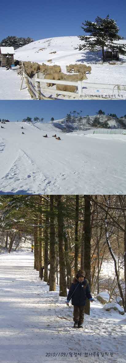 대구에 눈이 오기전날이라 눈구경이나 하려고 갔는데 사실 대박이였네요. 생각보다 풍경이 너무 아름다웠습니다. 겨울이여서 더 좋았던것 같네요. 온통 눈으로만 덮혀 있어서 아이도 좋아하고 나도 너무나 좋았던 것 같아요. 치즈를 별로 좋아하지 않은 저도 직접 만든 치즈를 먹어보니 쫄깃하니 맛도 있었어요. 한번쯤은 해 볼 만한 경험입니다. 눈썰매도 재미있고 유료로 타는 바나나보트썰매나 4륜오토바이도 재미있습니다. 발 시려우면 식당있는 건물에 참나무장작을 태우는 큰난로가 있습니다. 참나무 향기도 너무 좋고 따뜻하니 좋습니다. 오후에 월정사 코스도 괜찮아요. 눈길을 밟아서 가는 전나무숲길도 너무 운치있습니다. 이길은 여름에 와도 좋을것 같아요. 월정사도 좋지만 주변 풍경이 더 맘에 듭니다. 사진 동호회에서도 많이 올 만 하더라구요. 강원도 코스는 깨끗하고 맑은 공기, 겨울이라 온통 순백의 경치가 기분까지 맑게 해줍니다. 생각보다 너무 고되지도 않고 딱 적당한 코스였던 것 같습니다. 그리고 다른 여행사 패키지와 비교한다면 테마여행사가 아마추어 가이드가 아닌 프로 가이드로 여행객들에게 믿음을 주는 여행이 된다는 겁니다. |