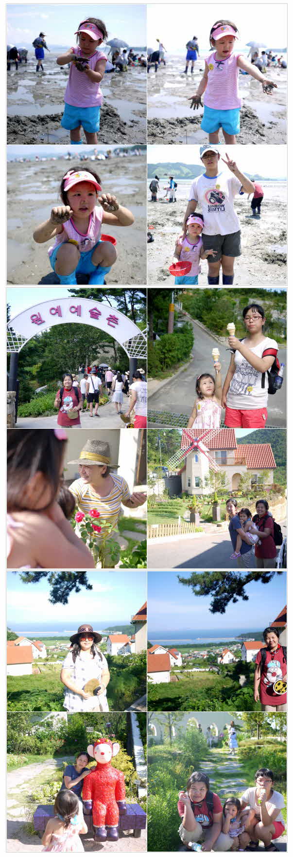 가기로 한 약속이 취소되어 실망이 이만저만이 아니었는 데, 마침 큰언니가 남해 쏙잡이갯벌체험을 조카와 간다 는 얘길 듣고 마냥 따라 나섰다. 아직 아이가 어려서 걱정이 이만저만이 아니었는데, 웬걸~~ 그것은 나의 기우였다. 새벽에 일찍 일어나야 함에도 불구하고, 깨울때 조금 짜증 은 냈지만^^;; 일어나 엄마, 빨리 가자고 재촉을 하는 것 이었다.. 동아쇼핑 앞에서 관광버스를 타고, 친절한 가이드님의 오 늘 일정을 들으며 앞으로 펼쳐질 광경이 눈앞에 보이는듯 했다. 우선 남해 쏙잡이 갯벌체험을 하였는데, 현지에 직접 살 고 계시는 분이 나오셔서 쏙잡는 방법과 유의사항에 대해 서 설명해 주셨다. 우리들은 많이 잡을거라고 의욕이 넘쳐서, 더운날씨에도 제일 의욕이 넘쳤던것 같다..ㅎㅎㅎ 처음 해보는 체험에 재미도 있고, 아이도 좋아하고.. 아이는 쏙잡기 보다는 아직 진흙놀이에 더 관심이 많았지 만, 조개줍기, 소라게, 게 등을 줍고 보면서, 갯벌을 놀이 터 삼아 재미있게 놀았다. 쏙은 4마리 밖에 잡지 못했지만, 아이와 함께한 더 없이 소중한 시간이었다.. 그날 모자와 선글라스를 준비 못해간 것이 넘 아쉬움 (썬크림, 모자, 선글라스 필수!!! ㅠㅠ 덕분에 나의 목과 팔은 새카맣게 탔다는거..꺼이~꺼이~) 갯벌체험을 마치고, 점심시간이 되어 가이드님이 안내해 준 곳은 '멸치쌈밥집'. 남해는 멸치쌈밥이 유명하다고 한 다. 멸치쌈밥(1인분/8,000원)과 갈치구이(1인분/12,000원)을 시켜서 먹었는데, 멸치의 비린맛도 없고 매콤한게 넘넘 맛 있었다.. 아이들이 먹기에는 약간 부담이 되니, 아이들은 갈치구이 도 괜찮을듯 하다. 점심을 먹고 우리가 향한 곳은 원예예술촌~~ 만평 정도의 땅에 나라별 양식에 맞게 집을 짓고 예쁜 정 원도 만들고...마치 내가 다른 나라에 와 있다는 느낌이 들 정도였다. 원예예술촌 안에는 탤런트 박원숙씨의 집(박원숙 린궁)도 있는데, 마침 드라마 촬영을 마치고 내려와 계신 박원숙씨 를 만날 수 있었다. 얼마나 미인이시던지, TV와는 영 딴판 ~~ㅎㅎ 악수도 성의껏 해주시고, 피곤하실텐데도 방문해 준거에 대해서 고마워하셨다. 이색적인 풍경을 배경으로 예쁜 사진도 찍고, 서로 찍은 사진을 보면서 흐뭇해 하고...깔깔거리며 웃고... 더운데도 더위를 잊게 해 줄 만큼 즐거운 여행이었다. 가족과 함께한 즐거운 시간, 추억... 다음에도 더 좋은 여행을 기약하며...버스에 올랐다.. |