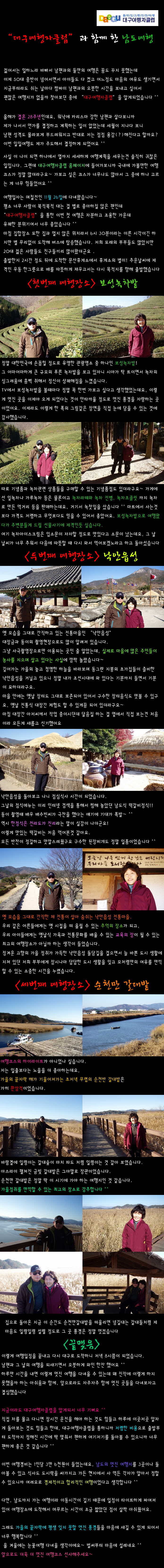 제목 ★★ "대구여행자클럽"과 함께 한 남도여행 ★★ 등록일 10.11.29 조회 550