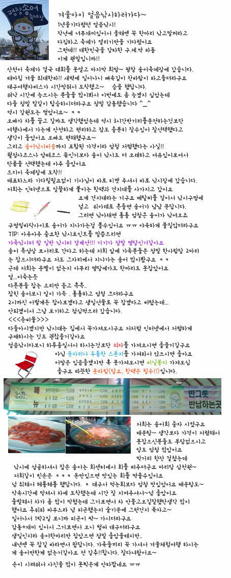제목 겨울엔 낚시가최고~! 송어축제갔다왔어요 등록일 11.01.21 조회 740