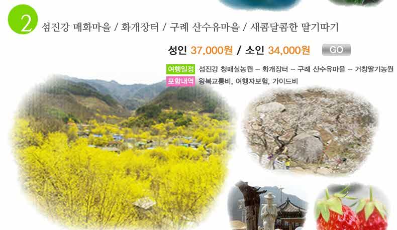 제목 | 매화마을,딸기체험,산수유마을,화개장터여행 후기 | 등록일 | 11.03.15 | 조회 | 506 |