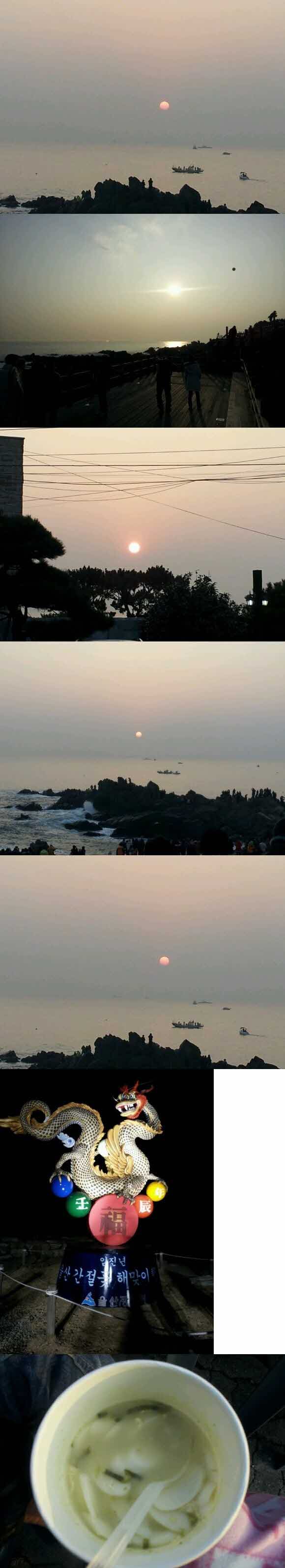 어디를 갈까 고민하다가 일출이 제일예쁘다는 간절곶을 선택하게되었다.. 정말이지 선택을 너무잘한것 같다.일찍 도착하면 지루한 시간을 어떻게 보낼지 고민했는데 괜한 고민이었다.여러가지 행사와 풍선을 날리는 모습은 정말 장관이었다.그리고 추운 사람들을 위해 마련해준 컵라면과 삶은계란 ㅎ 이렇게 맛있는 컵라면과 계란은 처음인것 같당 ^^그리고 새해 아침엔 무료로 떡국까지 ..다른 사람에게도 꼭 한번 추천해주고 싶은곳이다~ |