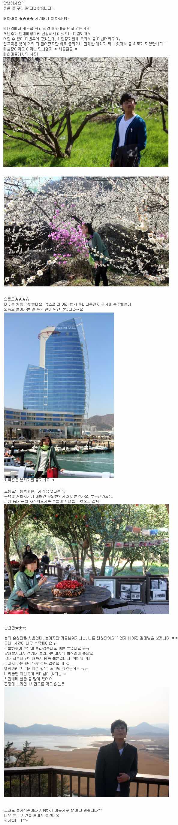 제목 4월7일 매화마을+오동도+순천만 후기입니다^^* 등록일 12.04.09 조회 580
