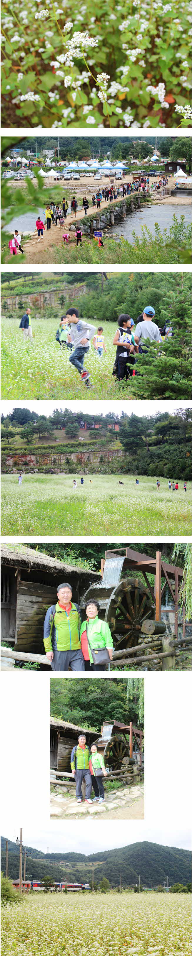 2012.9.15 토요일 봉평메밀꽃축제+정선여행 다녀왔습니다. 태풍이 온다는 소식에 여행일정에 차질이 생길까 걱정했지만 걱정과는 달리 저희가 여행하는 동안은 비가 오지 않았지요~ ^-^ 그날 저와 함께 가신 고객님들은 왜 비가 오지않았는지 저의 능력(?)실감 하셨을겁니다~! ㅎㅎㅎ 강원도 산골마을의 맑은 공기와 함께 일상속의 스트레스를 날려버리시고 좋은 추억만 많이 담아가셨기를 바랍니다. 팁으로 젊어지는 방법 알려드렸는데.. 생각나시죠? 사랑하는 사람과 여행을 떠나라~♬ 여행이라는건 단어만 들어도 마음이 설레는 것같습니다♥ 더욱이 사랑하는 사람과 함께라는 건 더더욱 설레고 행복하겠지요? 여러분들도 꼭 실천하셔서 몸도 마음도 젊어지시고 항상 건강하시길 바랍니다~! 담번에 또 만나요~♥