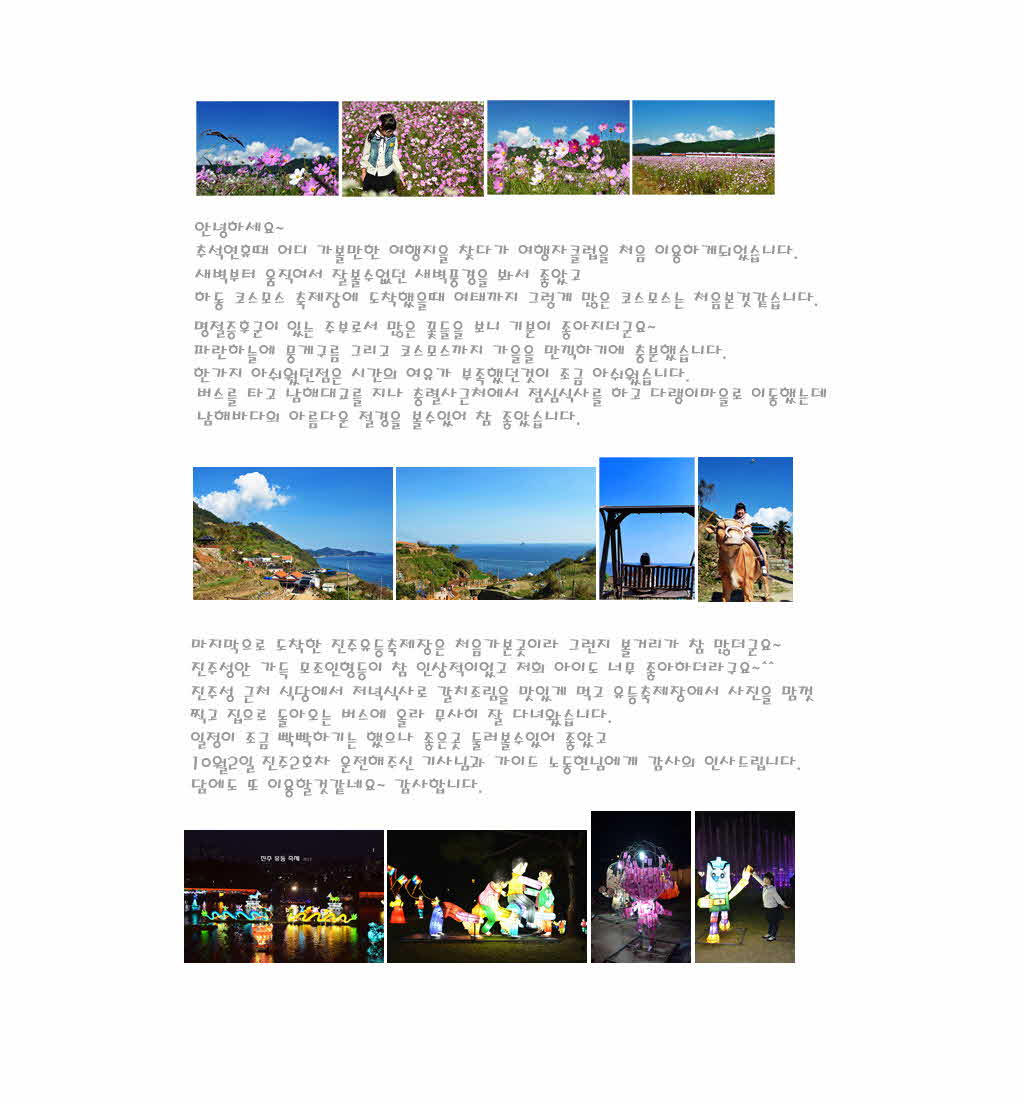 제목 코스모스축제와 다랭이마을,진주유등축제 잘다녀왔습니다 등록일 12.10.04 조회 646