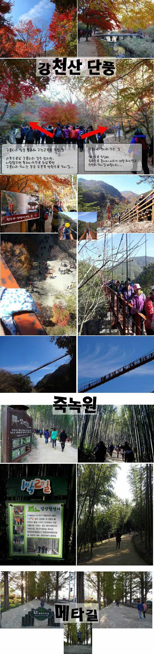 이날 강천산 단풍이 절정이라는 소식에 어찌나 사람들이 많은지......버스 입구부터 버스를 막아서 3주차장에서 내려서 (관광안내소) 지나고 (매표소) 지나고 (병풍폭포) 지나고 (강천사) 지나면서 예쁜 단풍 실컷 구경하고
