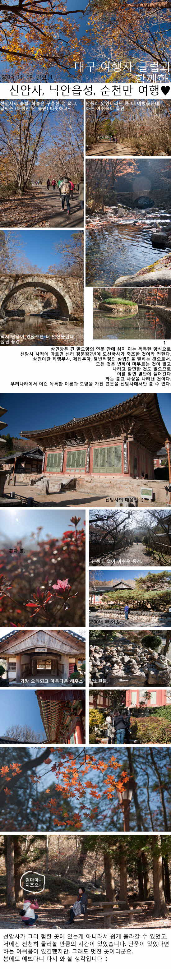 제목 가을의 끝자락에 다녀 온 선암사,낙안읍성,순천만 후기1(사진有) 등록일 12.11.25 조회 569