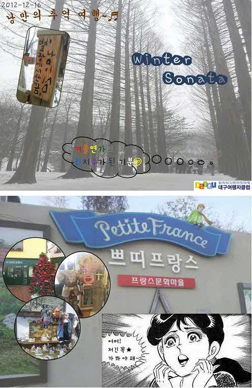 제목 | 낭만의 추억여행~♬ 춘천 남이섬과 쁘띠프랑스를 다녀와서 :D (12/16) | 등록일 | 12.12.17 | 조회 | 569 |