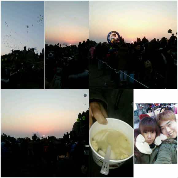 추위때문에 기다림이 힘들었지만... 기다린 보람이 있네요~~ 날이 흐려서 해돋이 못볼거라는 뉴스와는 달리... 붉은 해가 떳어요~~^^ 모두들 소망풍선두 날리구...바다에선...분수 쇼 까지... 그리구 따뜻한 떡국과 컵라면 달걀 배즙 커피...무료로 ^^ 뜻밖의 선물들...해돋이 보러갔다가...배까지 든든히 채우고 왔습니다... 그리고 돌아온는길엔 기장의 해동용궁사까지 관람~~ 알차게 관광하구 돌아왔습니다.... 감사드려요~~ |