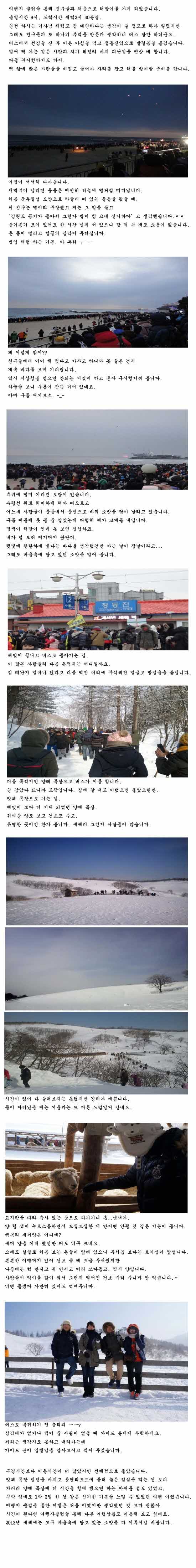 제목 1박 2일 같았던 새해 정동진 해맞이와 양떼목장 무박여행 등록일 13.01.06 조회 512