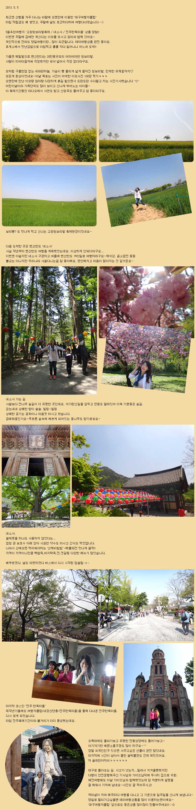 제목 ★어른이 더 신난다★어린이날_고창청보리밭축제/내소사/전주 한옥마을 등록일 13.05.08 조회 443
