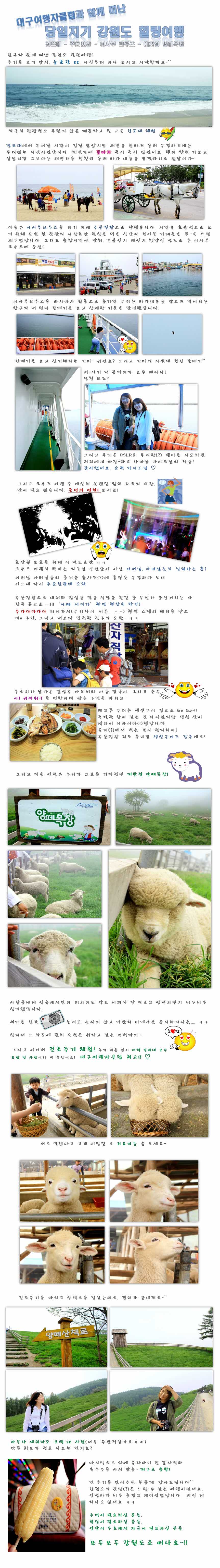 제목 사진이 있는 강원도(양떼목장-이사부크루즈 등) 여행 후기 등록일 13.06.19 조회 642