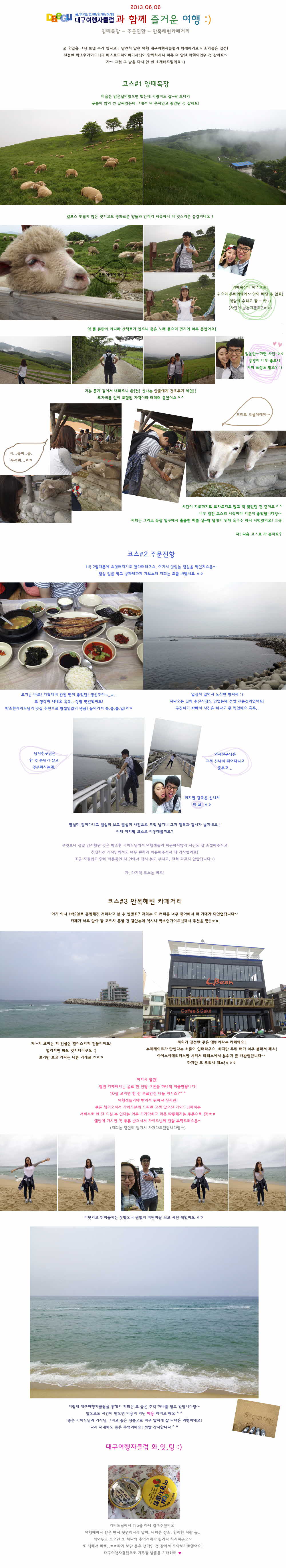 제목 6월 6일 양떼목장-주문진항-안목해변카페거리 등록일 13.06.22 조회 507