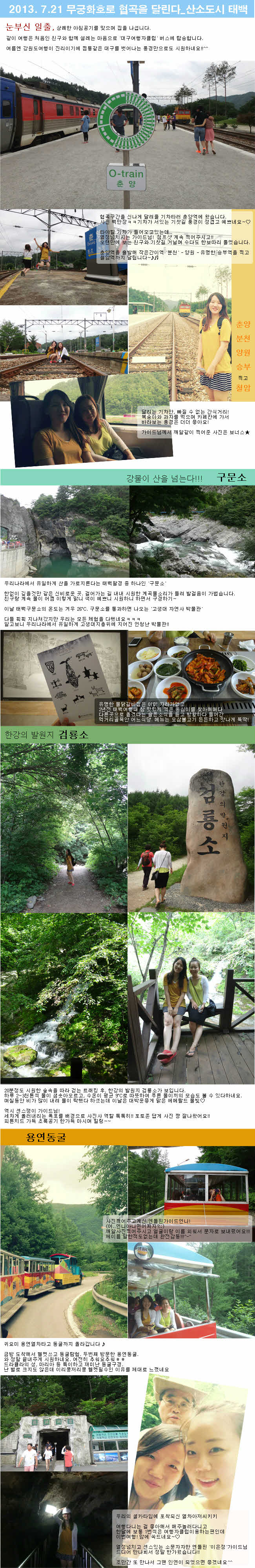 제목 협곡구간을 무궁화호로 달린다! 시원한 강원도여행_7월21일 등록일 13.07.29 조회 508