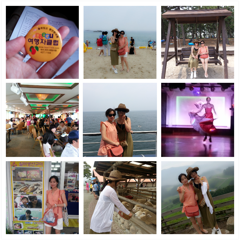 늘 서울이나 부산 출발 여행이 많아서 넘 번거롭고 힘들었는데 대구출발이라는 점이 무엇보다 가장 좋았고 저렴한 여행경비로 알찬 여행일정에 놓치면 후회할것 같아서 바로 예약하고 설레는 맘으로 갔습니다. 6시 출발 이른 시간이지만 버스안에서 충분히 자고 10시 반에 도착한 경포 해변 다시 버스를 타고 주문진항으로 고고! 이사부크루즈는 티비에서 봤는데 역시 유람선을 한번은 타봐야 '아~ 여름휴가 제대로 보냈구나' 하겠죠 유람선 귀항후 생선구이가 유명하다해서 갔으나..아빠어디가 촬영했던 집은 줄을 서야 할 정도예요. 다시 버스타고 대관령 양떼목장으로 고고!! 하루만의 이렇게 알찬 여행을 할 수 있게 해준 대구여행자클럽 감사하며