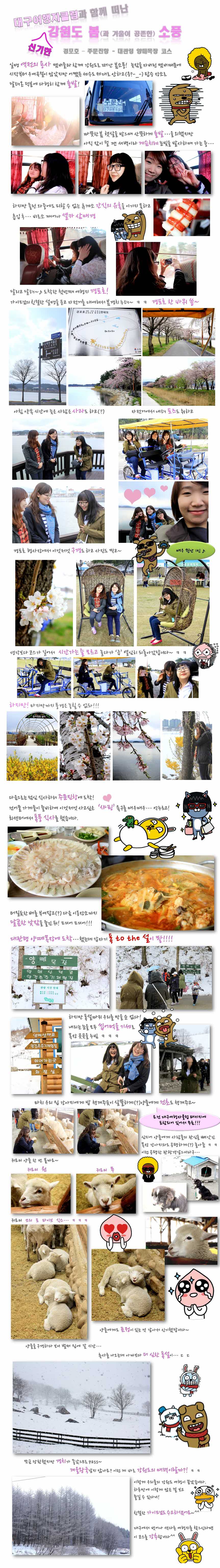 제목 강원도의 참맛?! 힐링여행 후기(사진있음) 등록일 14.05.22 조회 377