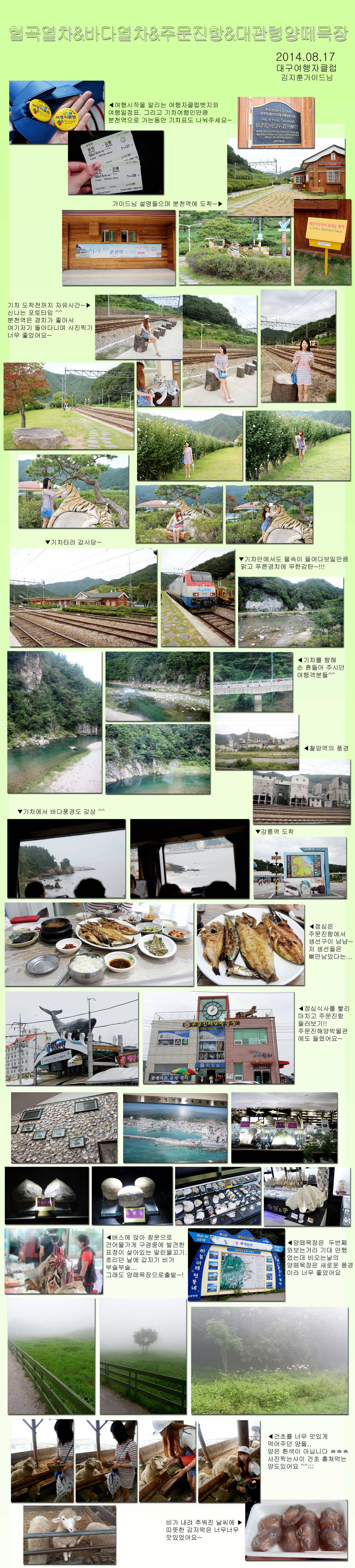 제목 | 8월17일 협곡열차&양떼목장 후기. | 등록일 | 14.09.10 | 조회 | 400 |