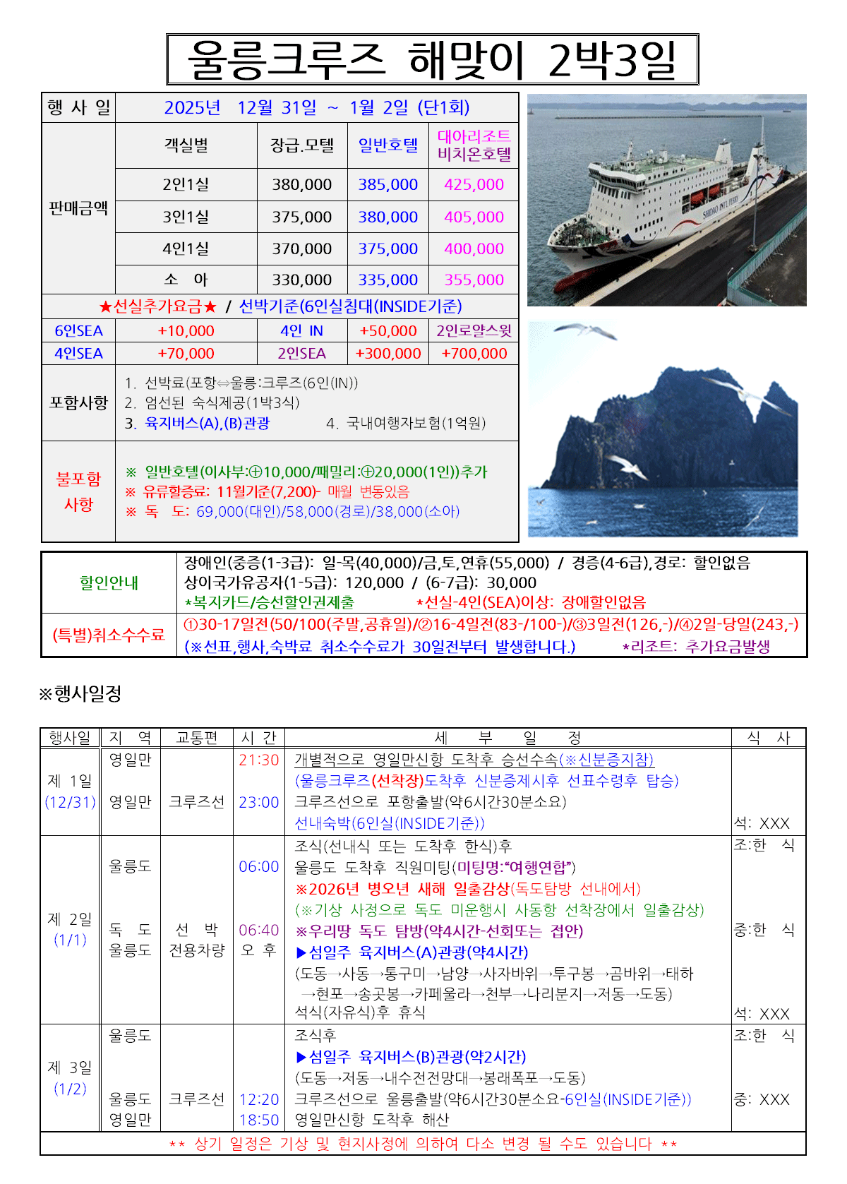 2026 울릉크루즈 신년 해맞이 2박3일 여행(12/31일)[1회출발]