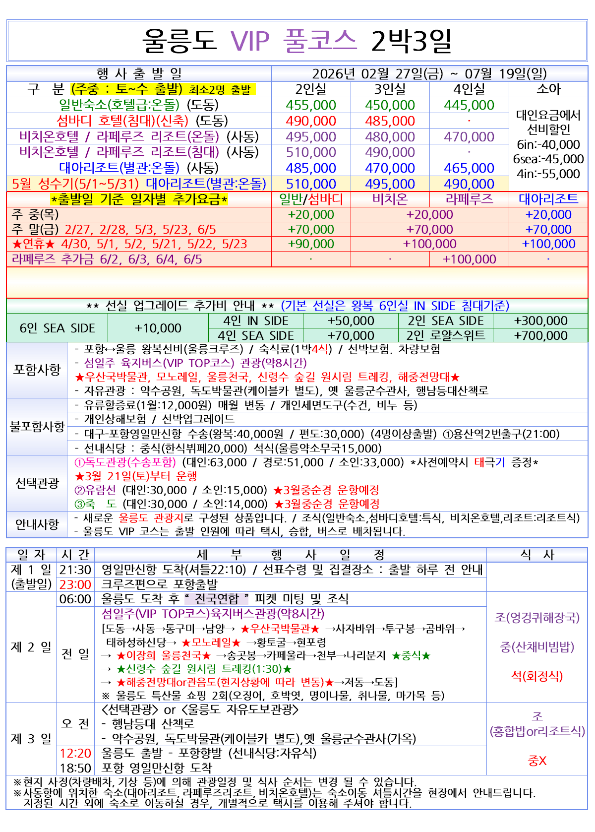 [매일출발] 2026 울릉도&독도 울릉크루즈 vip 풀코스 2박3일