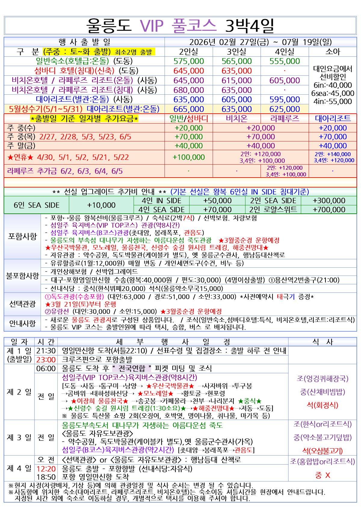 [매일출발] 2026 울릉도&독도 울릉크루즈 vip 풀코스 3박4일