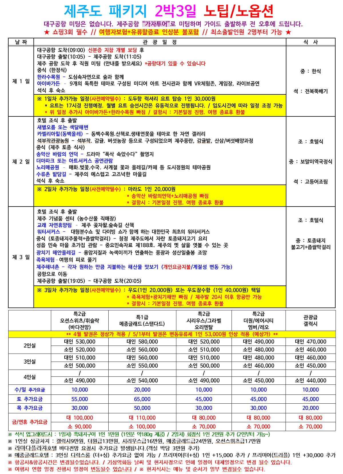 제주도 티웨이항공 패키지 2박3일 [전일정 식사포함]