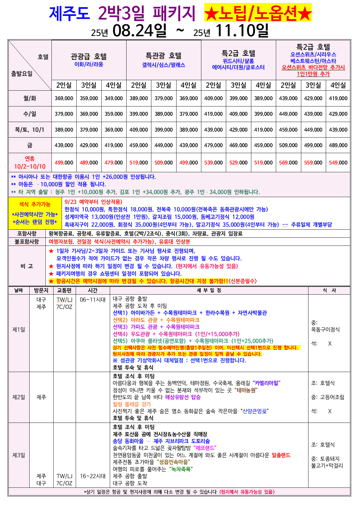 제주도 2박3일 섬투어포함[마라도or가파도] 패키지 노팁/노옵션
