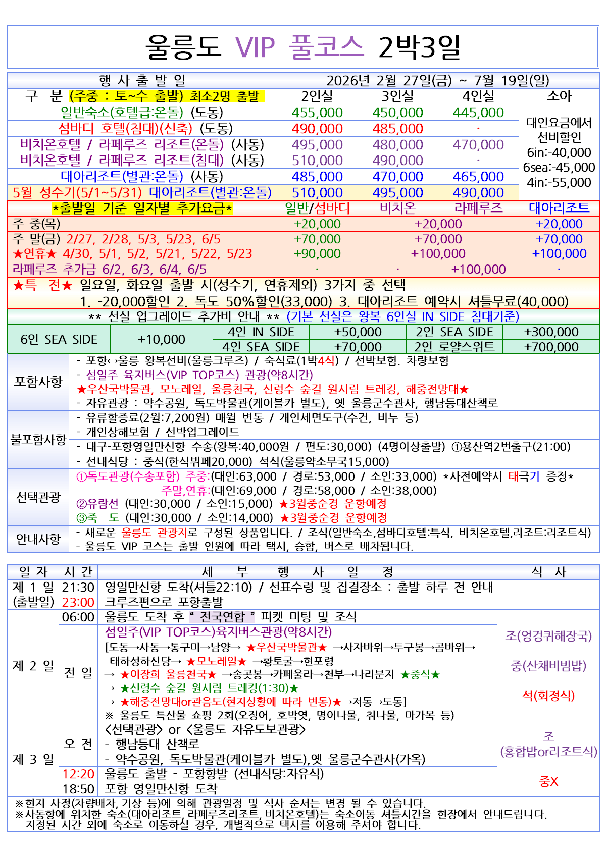 [매일출발] 2026 울릉도&독도 울릉크루즈 vip 풀코스 2박3일
