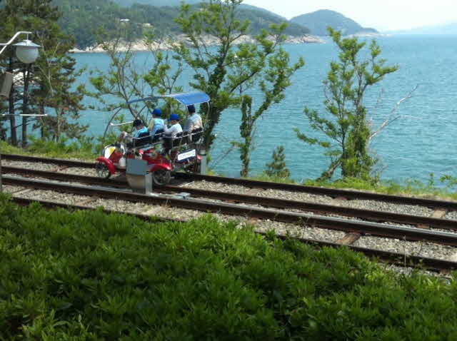 여수의 옥색 바다를 끼고 달리는 해양레일바이크! 보기만 해도 시원하고 즐거움 가득!