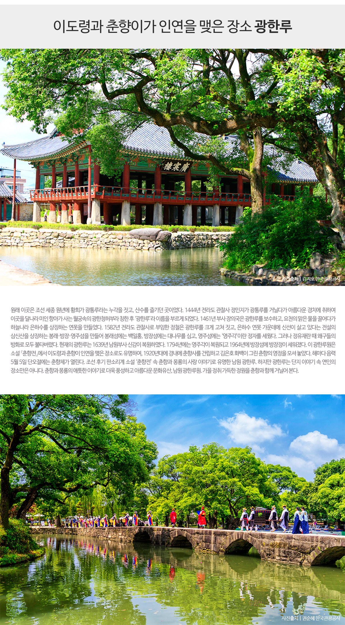 춘향전의 주인공 이몽룡과 성춘향의 사랑이 시작된 곳 광한루