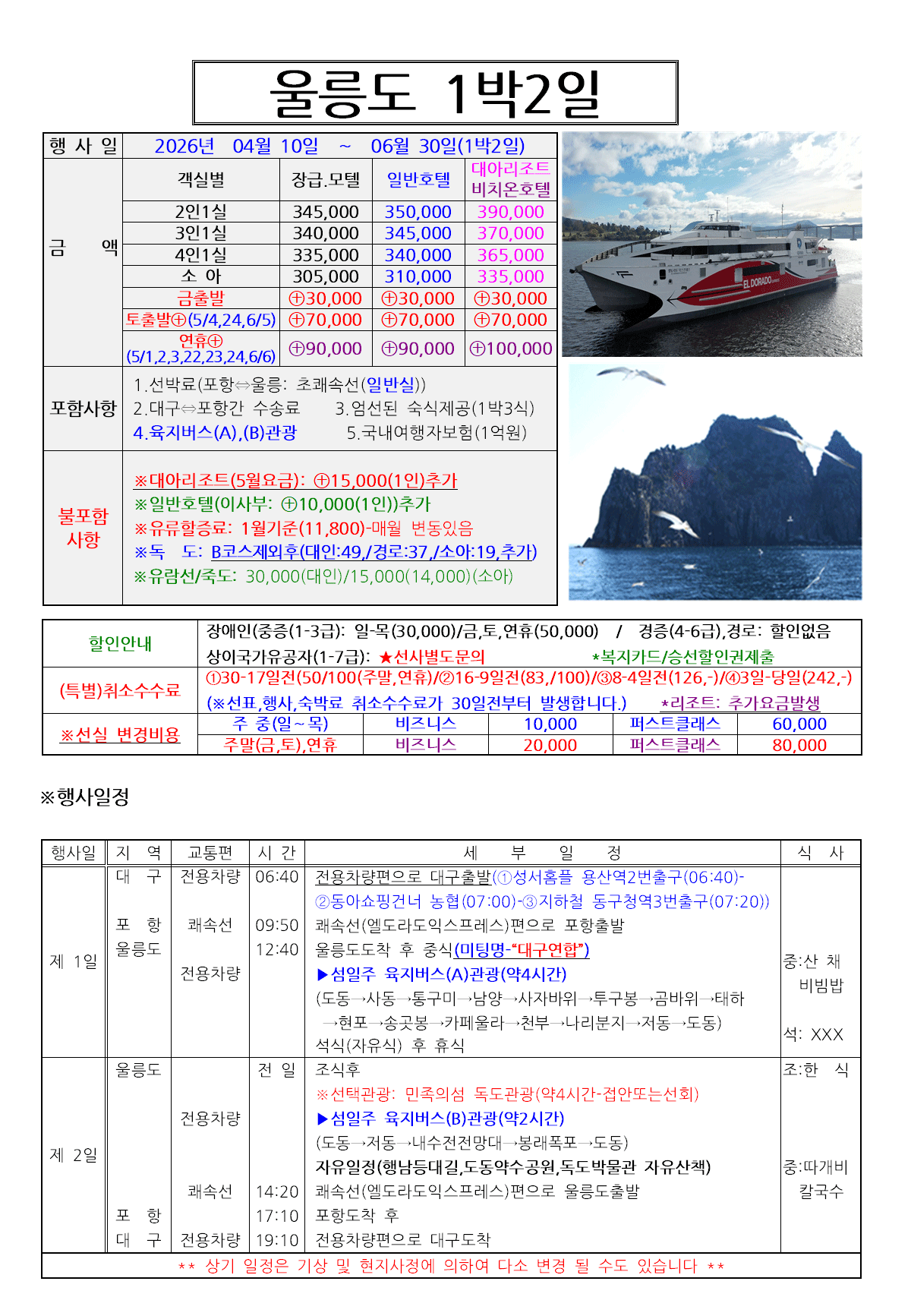 [매일출발] 울릉도&독도 상반기 쾌속선 1박2일