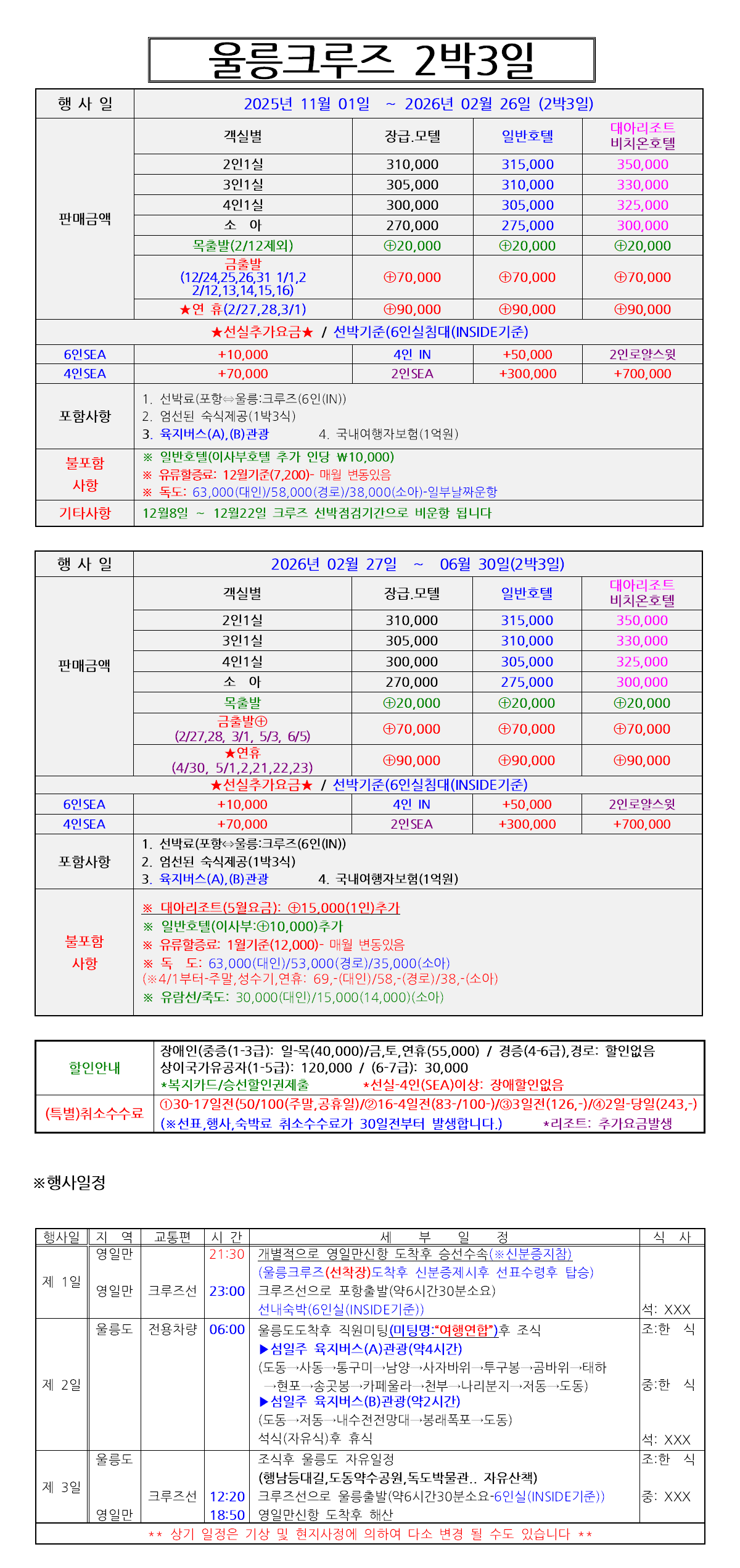 [매일출발] 2026 울릉도&독도 울릉크루즈 2박3일
