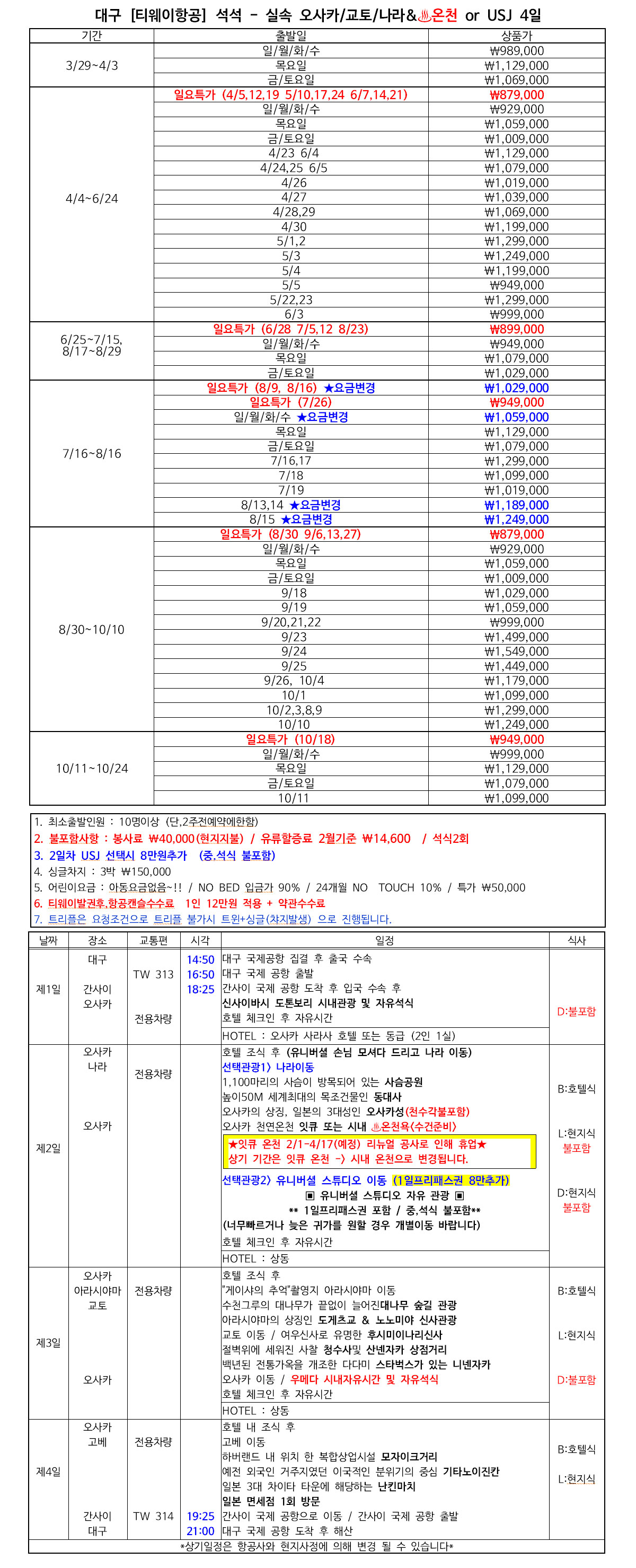 [오후출발 3/29~10/24] 오사카 나라 교토 잇큐온천or유니버살 3박4일